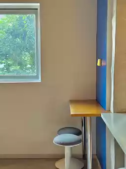 The interior features a variety of tables and seating, making it perfect for a quiet sit-down or a casual chat with friends.