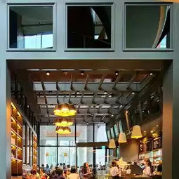 With large windows, the space is a casual yet stylish hotel cafe, with a natural light.