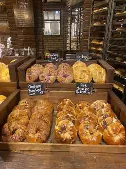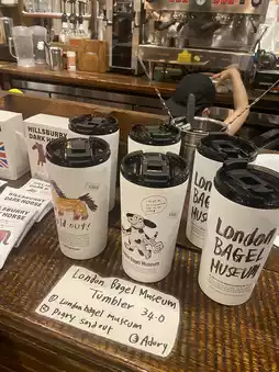 While being drawn in by the aroma of bagels, head straight to the merchandise corner. The logo tote bags are made of thick material and can stand upright, easily fitting A4 documents and a water bottle, making them great for daily use. The mugs have a charming, rustic gloss. The pins and stickers feature subdued colors, making them suitable for adults, and their cohesive design is perfect for buying in sets without looking mismatched. The merchandise shelves tend to rotate faster than the food line, so it's better to pick your items first before heading to the food counter.