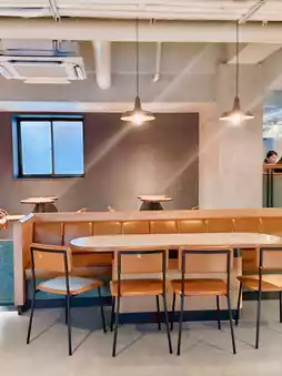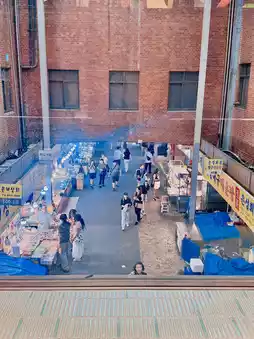 This is a spacious and atmospheric café located inside Gwangjang Market. It even has a rooftop, and you can enjoy unique menu items that are exclusively available here. The ambiance is fantastic, making it a perfect spot to relax. If you're visiting Jongno's Gwangjang Market, take a moment to enjoy a cup of coffee here and soak in the leisurely vibe. It's also a great place for taking photos. The space is cool and full of charm.