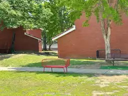 As you walk around the park, you'll come across the quaint red brick officers' quarters,