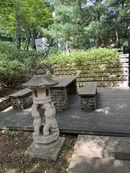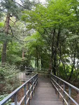 As you stroll along the long wooden deck path, you'll encounter a landscape of various trees and lush greenery. It made me think that the garden would showcase different charms with each season. Benches placed here and there provided perfect spots to sit and rest, and the sound of leaves rustling in the breeze was truly delightful.🌳