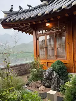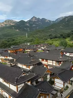 The hanok houses here are particularly stunning with the mountain as their backdrop, creating a harmonious blend of traditional architecture and natural beauty. The village is home to cultural centers, craft workshops, a café, and a restaurant where visitors can enjoy delicious food alongside breathtaking views.