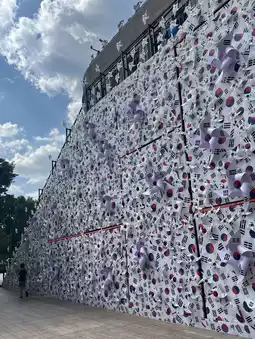 1️⃣Standing in front of the Seoul Library, you'll be greeted by the Taegeukgi (Korean flag) with the Chinese characters for "Korean Independence" boldly written on it, along with Taegeukgi pinwheels placed throughout the plaza.