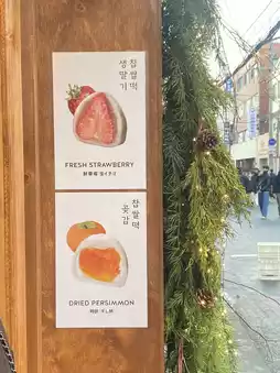 This shop is currently very popular. I first tried it two years ago, and there was always a line of people waiting to buy. Recommended flavors include dried persimmon, strawberry with red bean paste, and Shine Muscat grape.