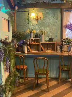This café is located in the Apgujeong Rodeo area and has two floors. The exterior and interior are decorated with wooden tones and flowers, accented with pink and green. Photography lovers will definitely enjoy it.