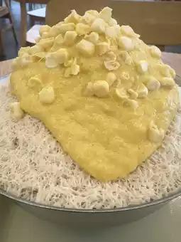 The corn bingsu is only available for two weeks and costs 21,000 won. They also have pistachio and limited-time peach flavors. Check their Instagram for details.