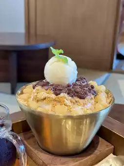 It's a great spot for quietly reading a book or enjoying some solo relaxation. On hot days like these, a bowl of shaved ice is perfect for cooling off while recharging your emotional batteries! 💡