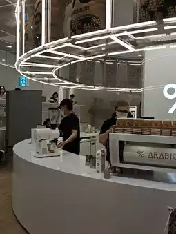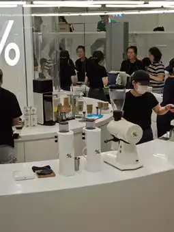 One of the hottest cafes Koreans visit when they visit Japan is Eung Coffee! % Arabica Cafe has now opened in Korea. 🫶🏻 The clean interior is stylish, and the coffee is delicious.