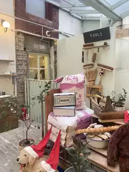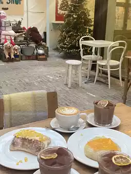 The unique feature is their oven, which allows you to heat your own bread. It's a fun experience. The shop is decorated in light green wood tones. It was Christmas time when we visited, and the shop was decorated so cutely that every corner is beautiful.
