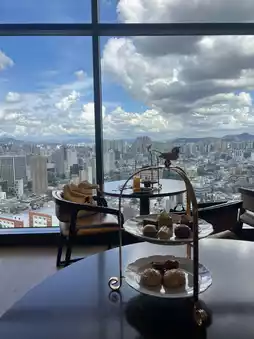 During the day, you can enjoy afternoon tea with cakes, scones, and sandwiches, while in the evening, the happy hour offers sparkling wine and finger foods, making it a convenient option for a light meal. However, happy hour operates on a reservation basis, which makes it less flexible to use, and the food selection was somewhat limited, which was a bit disappointing.