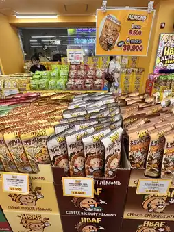 Stepping into the HBAF Myeongdong Flagship Store for the first time, I was instantly overwhelmed by the vibrant colors and cheerful atmosphere. It felt like entering a snack-themed amusement park, with every corner beckoning me to explore. For snack lovers, this place is heaven, even more exciting than visiting a typical duty-free shop. The giant almond figurines and decorations on the walls not only lift your spirits but also make for perfect photo spots. The massive Honey Butter Almond figurine, in particular, has become a must-photograph backdrop for visitors.