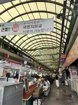 Stepping into Gwangjang Market for the first time feels like being transported into a magical world of flavors and sights. The market's atmosphere is entirely different from modern department stores or restaurants. There are no fancy decorations or air conditioning, but it is brimming with a vibrant, down-to-earth charm. Stalls are lined up in neat rows, with the sizzling sound of hot oil, the steam rising from boiling soups, and the vendors' calls blending into a symphony of Korean street life.