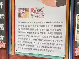 Jingwansa Temple gained fame in 2009 when an old Taegeukgi and 19 items related to the Independence Newspaper were discovered during the dismantling and restoration of Chilseonggak Hall. The Taegeukgi is believed to have been made by the Provisional Government of Shanghai and used during the March 1st Independence Movement. These items were hurriedly hidden by Chowol, a monk and independence activist, before his arrest.