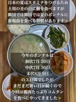 but in Korea, it's customary to eat Samgyetang (Samgyetang) during summer Bonnal. ✨