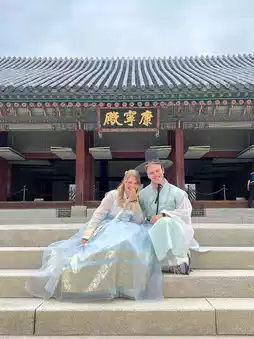 There are many hanbok rental shops around Gyeongbokgung Palace. Strolling around the palace in hanbok will make for even more special photos and even give you free admission!