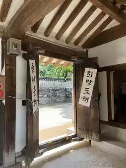 The surrounding trees and the sound of the wind harmonized with the Hanok, creating an even more tranquil atmosphere. It felt like a brief escape from the bustling city, offering a moment of peaceful rest. ๐บ