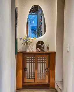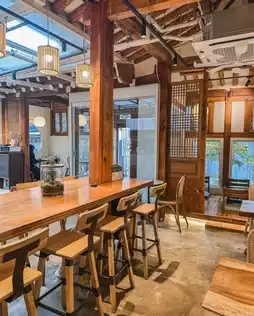 This hanok cafe, located in an alley near Anguk Station, is a great place to stop by for a bite to eat. Inside, soothing music plays and a variety of hanok artifacts are on display.