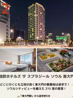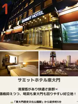 Carefully selected by a former travel agency employee! We're currently delivering cost-effective travel information for Gen Z office workers that will allow them to fully enjoy local experiences! We'll be posting recommended spots and travel tips that only a former travel agency employee can share, so follow us to get the latest information 😄@KawaTabi✈️ —— ... Let me know in the comments 🙏①Summit Hotel Dongdaemun📍198 Jangchungdan-ro, Jung-gu, Seoul②Hotel The Splaisir Seoul Dongdaemun📍226 Jangchungdan-ro, Jung-gu, Seoul③Nine Tree Hotel Dongdaemun📍224 Eulji-ro, Jung-gu, Seoul④Hotel Skypark Kingstown Dongdaemun📍13-20 Jangchungdan-ro, Jung-gu, Seoul⑤Baiton Hotel Dongdaemun📍346 Donghoro, Jung-gu, Seoul*Prices may vary depending on each site, room type, and season. If you want to check it out again or are interested, please like ♡ and save! ———————————————————————We introduce recommended tourist destinations, countries, and hotels. ✌️ We also post useful travel tips, so be sure to check them out. ✈️ If you would like to use our posts as reference or support us, please follow us! 😆\Have a journey that will be the starting point of your life. / See you soon! 😊——————————————————————#DongdaemunHotel #KoreaTrip #DongdaemunTourism #SeoulHotel #KoreaTrip #KoreaHotel