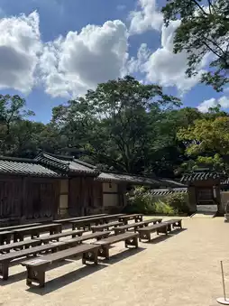 The Seonhyangjae (a study hall) features Chinese-style walls and a Western-style awning. Nongsujeong, located on a high ridge in the backyard, has a sleek appearance resembling a falcon spreading its wings. 🌳