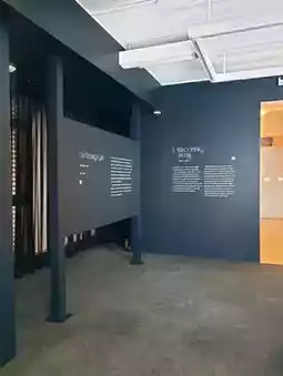 ⚘ Tip: Use the reflections of the artworks on the floor and the views beyond the windows inside the exhibition space for your photography.