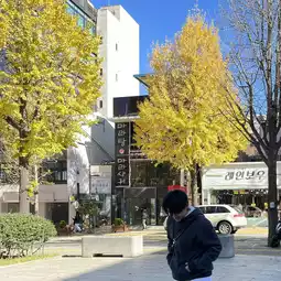 Our destination for seeing the leaves change color was Ewha Womans University, a university blessed with abundant nature. When the autumn leaves arrive, it's a popular destination for tourists, and we didn't disappoint. From the station to the university, the atmosphere is ebullient with autumn. You can also stroll around and take photos, and the surrounding area also offers a variety of shops and restaurants.