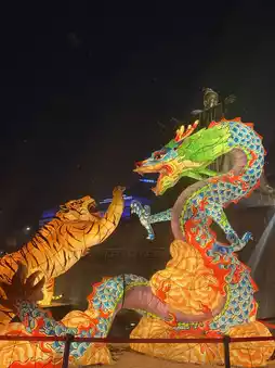 This area attracts a large crowd waiting to watch the show. Each light performance lasts about 15-20 minutes, and then you have to wait for the next round. The event also features lantern decorations in the shapes of animals and popular characters of the year. It's definitely worth checking out!