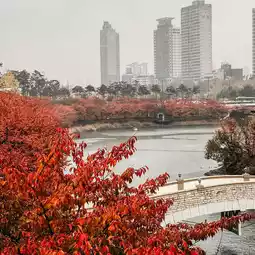 The late-fall foliage surrounding Seokchon Lake is absolutely stunning. 🍂 Red, orange, and yellow leaves line both sides of the walkway. Taking photos here is like stepping out of a Korean postcard. The sunset reflecting off the water in the evening is especially romantic.