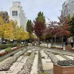 #TravelChat Yeontral Park is a linear park built on the old railway line that was moved underground. While not large, it stretches for 6 kilometers. The park is lined with trees and has several zones, including a seating area and a section where you can walk along the tracks, filled with colorful trees. It's a popular place for relaxation, picnics, strolls, and evenings. It's a great place to enjoy the changing leaves, as the trees aren't just yellow. There are also vibrant reds and greens, making it incredibly beautiful. ✨