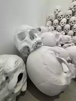 The piece that left the strongest impression on me was 'Mass,' which filled the exhibition hall. It’s a massive installation made up of dozens of skull sculptures stacked together, creating an atmosphere that seems to pose questions about life and death. I couldn’t take my eyes off it. 👻