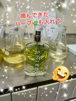 Just blend two fragrance oils and alcohol according to the recipe, add your favorite herbs picked from the courtyard, and you're done!