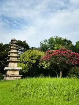 • Exhibits large stone artifacts, including stone pagodas, stone Buddhas, and stone lanterns.