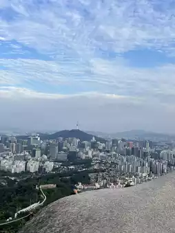 Inwangsan Mountain, located right in the heart of Seoul, is an ideal spot for those looking for a light hike. Compared to other mountains, its trails are shorter and more gentle, making it a great choice even for beginners. You can reach the summit in just about an hour, even at a leisurely pace, making it feel more like a casual stroll or light trekking rather than a strenuous workout.