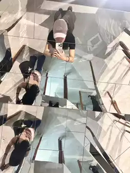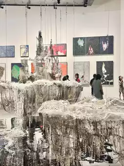 The exhibition features large-scale works that visitors can explore and interact with, many of which utilize mirrors. The content is accessible, making it a fun experience even for those unfamiliar with art.