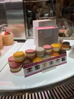 As soon as you enter, the first thing that catches your eye is the beautifully arranged cake display. 🎂🍓 There are fresh fruit cakes, cute pastel-colored macarons, and other baked goods. It's hard to choose. Each piece is exquisitely decorated, and you'll want to try everything.