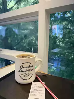 Take a bite of a sweet donut while gazing at the Yangjaecheon Stream 🍩💕 Complete your healing day at Queensberry!