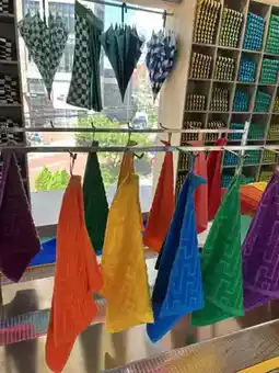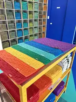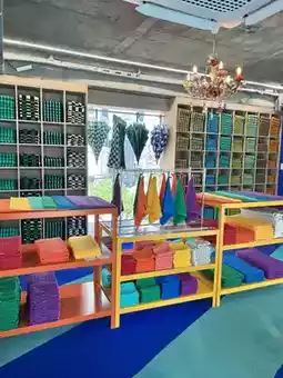 The store is so colorful, I even saw people buying towels in their favorite members' colors!