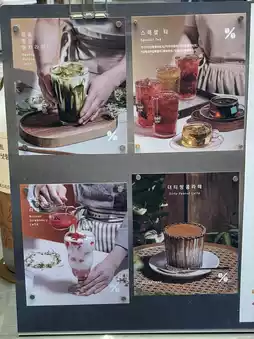 Hadong Matcha Latte 🍵 / Nonsan Strawberry Latte 🍓 / Dirty Peanut Latte 🥜 / Special Tea 🍑🍇