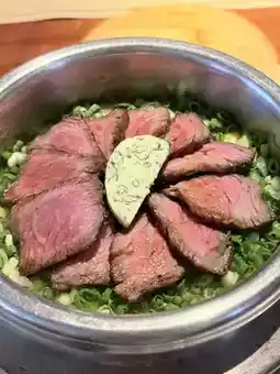 Kamameshi options include steak, salmon, and abalone, but I chose the limited-edition steak kamameshi. :)