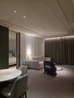 Sofitel Prestige Family Suite offers a luxurious and relaxing space for families staying in Seoul. The spacious 70㎡ suite is thoughtfully designed with a king-size bed and a sofa bed, making it ideal for families with children. The suite features stunning views of Seokchon Lake, capturing the morning sunlight and evening glow, which can be enjoyed from the living area. The bathroom is equipped with French amenities from the Diptyque brand, and includes a separate stand-alone bathtub and walk-in shower, providing a resort-like atmosphere. The layout separates the living room and bedroom, allowing adults to read or work quietly while children nap or rest. High-speed Wi-Fi, access to the swimming pool and fitness facilities, and 24-hour room dining ensure a comfortable and convenient stay. The sophisticated lighting and detailed interior finishes make the hotel stay itself a memorable experience. This suite is highly recommended for family trips, anniversaries, or special occasions.