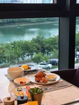 The Sofitel Ambassador Hotel in Jamsil, Seoul, offers a breakfast buffet that makes every morning even more special. The Fe Maison breakfast buffet starts at 6:30 AM and runs in three shifts. The later you arrive, the more crowded it gets, so aim for an early one for a more relaxed experience. The menu features a diverse bakery section with French breads, croissants, and pain au chocolat. The egg station is particularly popular, with dishes like Parisian Eggs Benedict, ratatouille, and abalone and seaweed steamed eggs. There's also a Korean section with a variety of salads, juices, fruits, and soups, offering a variety of options to suit your taste. The buffet ranges from approximately 66,000 to 77,000 won for adults, with child rates also available. Best of all, the window seats offer a stunning view of Seokchon Lake, adding to the visual appeal. The overall atmosphere is luxurious, making breakfast a truly luxurious experience. When using the breakfast buffet, check the time slots and seating locations in advance to ensure a more satisfying morning.