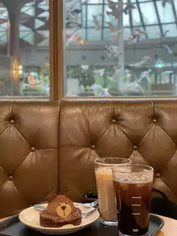The interior of the store is spacious and comfortable, offering a variety of seating options suitable for both solo time and gatherings with friends. The Reserve coffee, brewed directly by baristas, paired with bark chocolate, is a popular menu item here, perfect for enjoying a sweet moment with your coffee.
