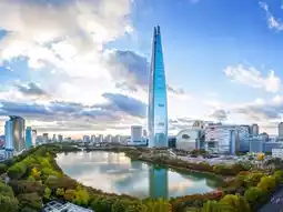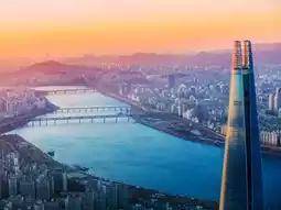 The 123-story Lotte World Tower is Seoul's skyscraper landmark. The observatory, "Seoul Sky," offers panoramic views of the Han River and all of Seoul.