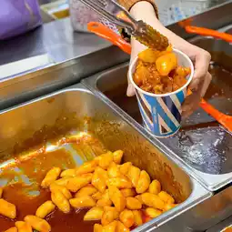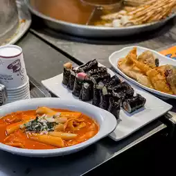 • A wide variety of street food: tteokbokki, fried chicken, hot dogs, cheese corn dogs, and even warm Korean soup for winter.