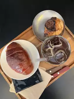 Hello! Today, I'm introducing a cozy cafe not far from Hapjeong Station! It's spacious and has plenty of seating, so it's often frequented by local office workers during lunchtime. I was feeling peckish when I stopped by because of the wide selection of baked goods!😊 I was so hungry that I ended up choosing two bakeries, but I couldn't just pick one. ㅠ I chose some unique items to pair with my coffee.