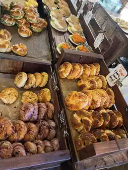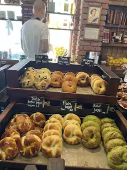 If you're thinking of this place as a trip destination, I recommend the following itinerary: Get a number online in advance; upon arrival, take a quick look around, but don't rush to grab something—the things you really want will jump out on the second round. Order one savory and one sweet, and share a soup or salad. This allows you to fully appreciate the flavors without overloading your stomach. If you're planning to take out, the staff will thoughtfully pack the spreads separately, ensuring the perfect texture when you return to the restaurant. A quick reminder: fresh bagels are best eaten the same day; if you're saving them for the next day, spray them lightly with water before baking to restore their beautiful crust.