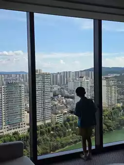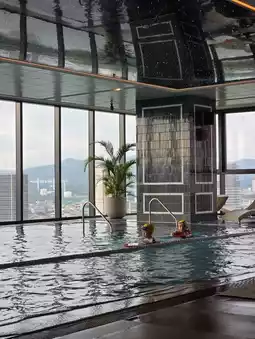 Sofitel's indoor swimming pool offers a cozy atmosphere with a glimpse of the city's skyline through the windows. As the gentle ripples of the water sway, immersing yourself in the pool brings a refreshing sense of relaxation to your entire body. The lighting is perfectly subtle, providing a warm natural glow during the day and blending beautifully with the cityscape at night. The towels are plush, and the well-equipped shower rooms with swimsuits and amenities make preparation hassle-free. Whether you're floating effortlessly in the water or sipping a cocktail at the poolside lounge, you'll find yourself thinking, "This is what a hotel staycation is all about!" It's an ideal spot for families to enjoy water activities with kids while adults can unwind and savor their leisure time. Sofitel's swimming pool truly offers the most comfortable and serene moments of the day.