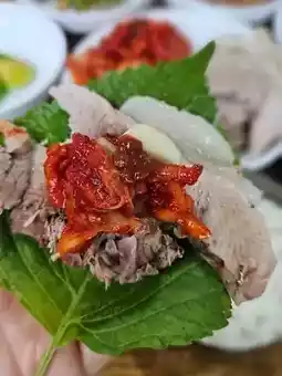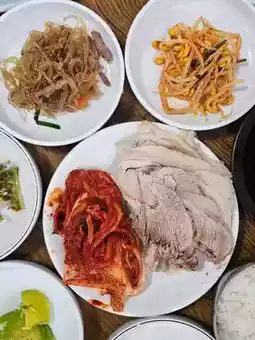 Rice, side dishes, and bossam are brought out one after another without a wait. 😁