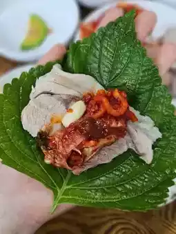 Once I'm seated, I say "bossamchuseyo" (bossam chuseyo).
