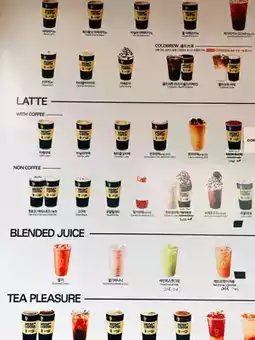 You can literally see the yellow sign "MEGA COFFEE" every few steps on the streets of Seoul, South Korea. It's a budget coffee chain that's become incredibly popular among young people in recent years! Besides its large portions and affordable prices, it also features popular Korean celebrities as its spokespersons. The cup sleeves are collectible. There are eat-in options and takeout options. Orders can be placed using a screen, making it easy even for those who don't speak Korean.
